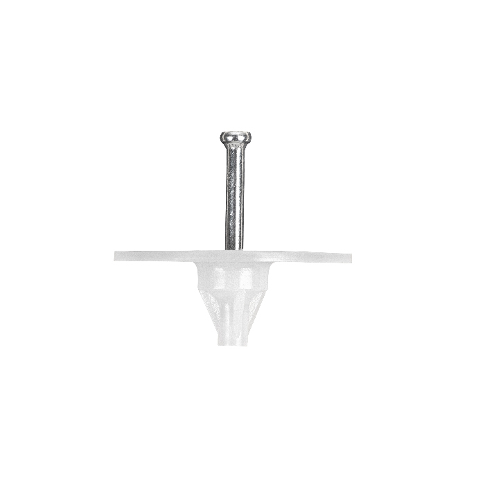 Тарельчатый дюбель гриб с гвоздем для пневмо- и газовых монтажных пистолетов разных производителей, предназначенный для монтажа различных изоляционных материалов к конструкциям из бетона, кирпича и иным основаниям.